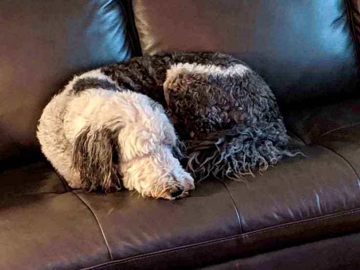 Beau: I am. I’m curled up into a ball sleeping on the couch. It’s not like I’m taking up the whole thing. And after the walk I just had, this is where I’m staying. I’m pooped. I’m not moving.