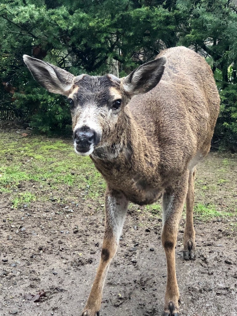 Me: That’s true Beau, but I’m here on Gabriola Island at your Auntie Annie and Uncle Lee’s house and I’m the one typing and watching the deer outside my window…
