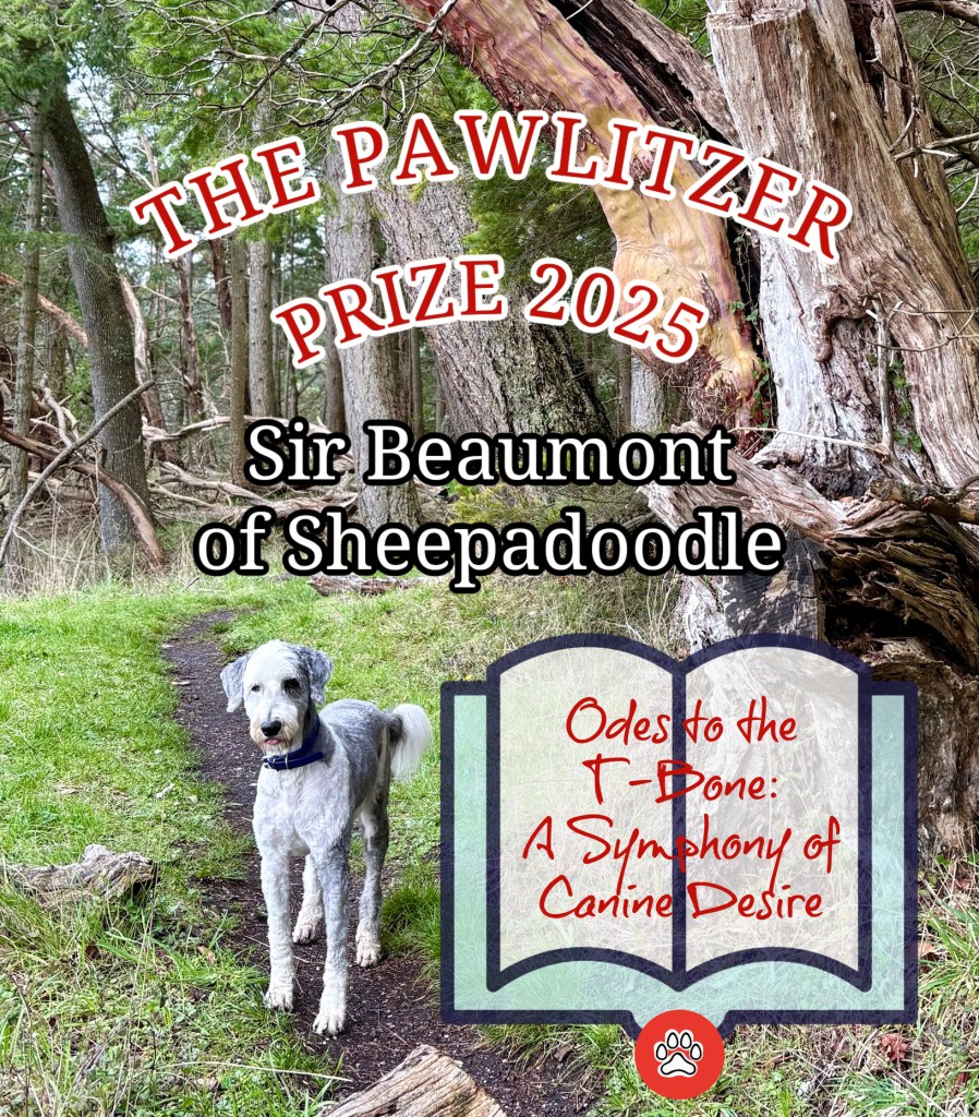 This hot off the dawgone presses! Your very own Sir Beau has been awarded the prestigious 2025 Pawlitzer Prize for Dogpawed Literary Excellence! And to give you a glimpse into the sheer brilliance that swayed the esteemed jury, here’s an excerpt from their official pronouncement: